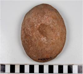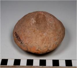 | Description / विवरण | A terracotta cake circular in shape, having thumb impression on both sides of rough surface. |