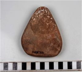| Description / विवरण | A terracotta cake triangular in shaped slightly broken from the corner and smooth surface. |