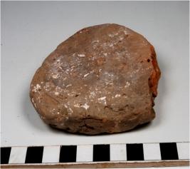 | Description / विवरण | A terracotta cake triangular in shape and rough surface slightly broken from the corner. |