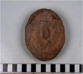 | Description / विवरण | A terracotta cake circular in shape having thumb impression on both sides of smooth surface. |