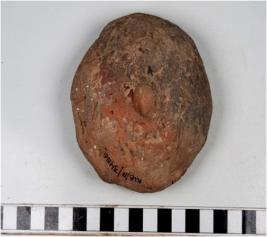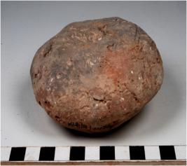 | Description / विवरण | A terracotta cake circular in shape having thumb impression on both sides of rough surface. |