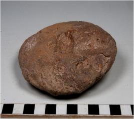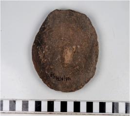 | Description / विवरण | A terracotta cake circular in shape having thumb impression on both sides of rough surface. |