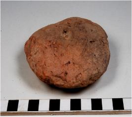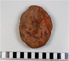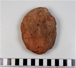 | Description / विवरण | A complete terracotta cake with circular information, having finger impression on the surface, smooth surface. |