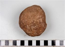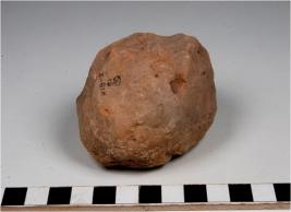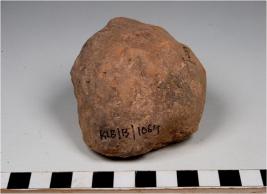 | Description / विवरण | A terracotta mushtika cake round in shape and uneven rough surface. |