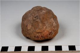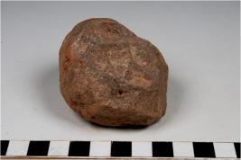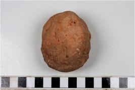 | Description / विवरण | A terracotta mushtika cake round in shape and uneven rough surface. |