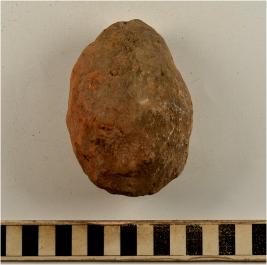 | Description / विवरण | A terracotta round shaped cake having uneven rough surface. |