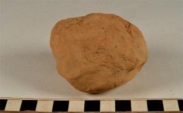 | Description / विवरण | A terracotta cake circular in shape having finger impression and rough surface. |