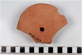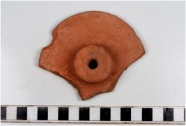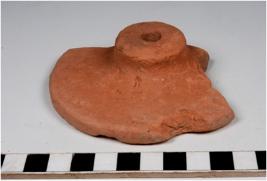 | Description / विवरण | A fragment of a terracotta wheel having hub of rough surface. |