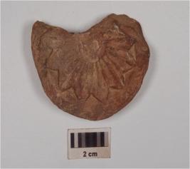| Description / विवरण | A fragment of a terracotta disc has incised floral pattern in circle. |