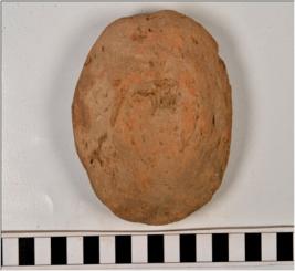 | Description / विवरण | A terracotta cake Idly type with circular in shape having fingure impression, uneven surface. |