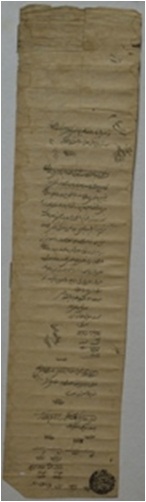 Document in Persian-one sheet. It comprises of eleven lines. At the back, certain information s in tabular form are given in this document. With a seal at the bottom on the right side. It is a document related land revenue administration of Pargana-in Kangra District.