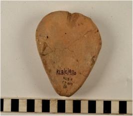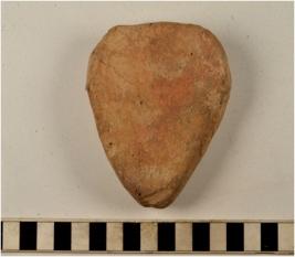 | Description / विवरण | A terracotta cake triangular in shape and smooth surface. |