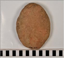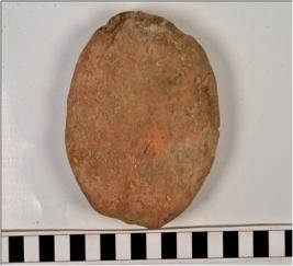 | Description / विवरण | A terracotta cake Idly type with circular in shape, rough surface. |