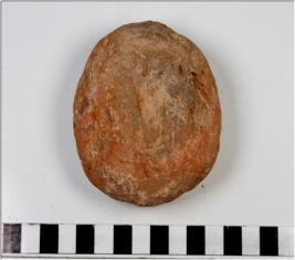 | Description / विवरण | A terracotta cake with circular in section having finger impression and fine fabric. |
