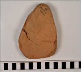 | Description / विवरण | A terracotta cake with triangular shape, of medium fabric. |