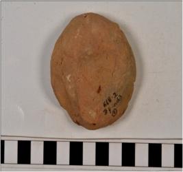 | Description / विवरण | A terracotta cake with circular shape having thumb impression in the middle, of medium fabric. |