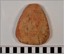 | Description / विवरण | A terrracotta cake with triangular shape of medium fabric. |