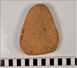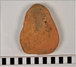| Description / विवरण | A terracotta cake with triangular shape, of medium fabric, ill fired. |