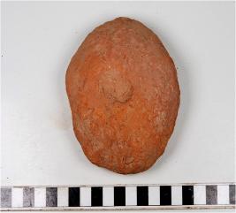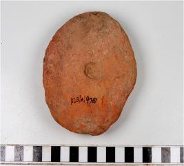 | Description / विवरण | A terracotta cake circular in shape having thumb impression on both sides and smooth surface. |