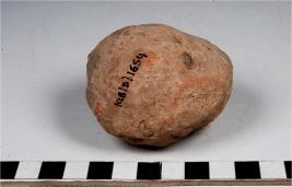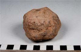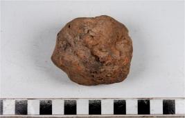 | Description / विवरण | A terracotta uneven round shaped cake of rough surface. |