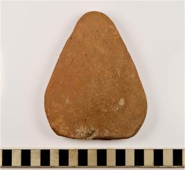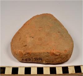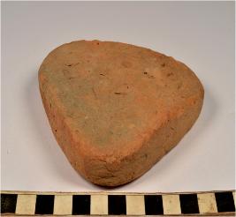 | Description / विवरण | A terracotta cake triangular in shape, rough surface. |