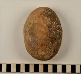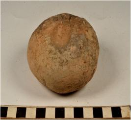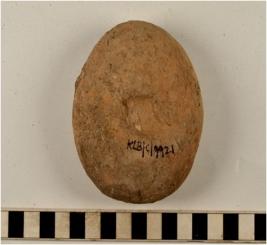 | Description / विवरण | A terracotta cake circular in shape having thumb impression on both sides of rough surface. |