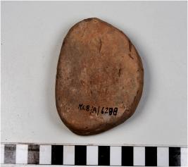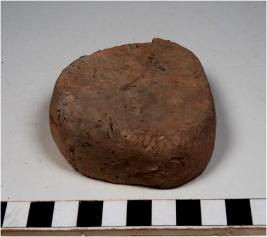 | Description / विवरण | A terracotta cake triangular in shape, rough surface. |