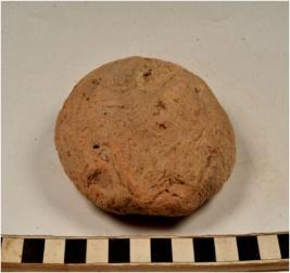 | Description / विवरण | A terracotta cake, circular in formation having fingure inpression rough surface. |