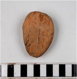 | Description / विवरण | A terracotta cake circular in shape and rough surface. |