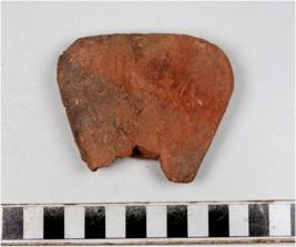 | Description / विवरण | A fragment of a terracotta cake with traingular in formation of smooth surface. |