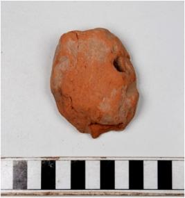 | Description / विवरण | An unidentified terracotta object having oblique hole on one side. |