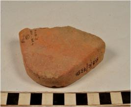 | Description / विवरण | A fragment of a terracotta cake triangular in shape, rough surface. |