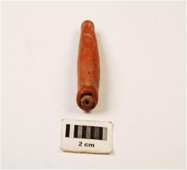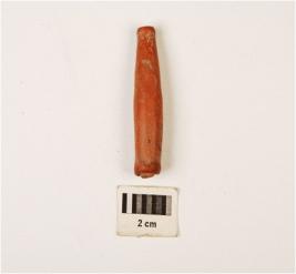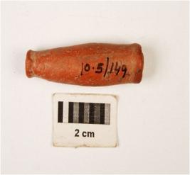 | Description / विवरण | Terracotta unidentified object, cylindrical body, flat base and pointed round top. |