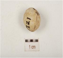 | Description / विवरण | Terracotta sling ball with smooth surface, fine fabric, buff slip and circular in section. |