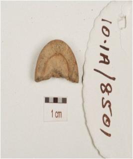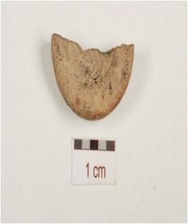 | Description / विवरण | Fragment of handmade terracotta bullae, disc in shape, rough surface and gray in colour. |