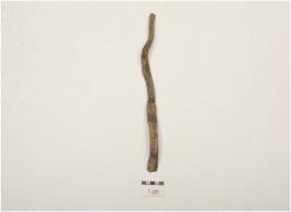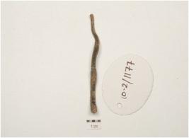 | Description / विवरण | A fragment of copper wire, partly broken one end, curved at other end , rectangular section and rough surface, |