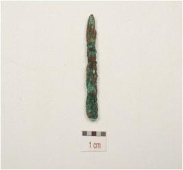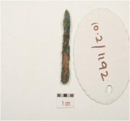 | Description / विवरण | A fragment of unidentified object made of copper, rectangular in section, chemically treated and rough surface. |