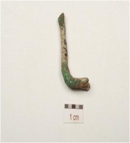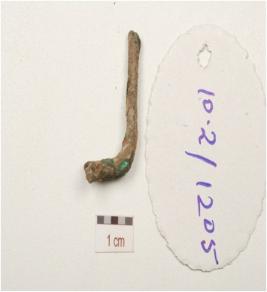 | Description / विवरण | A fragment of clamp made of copper, slightly curved, rough surface and rectangular cross section. |