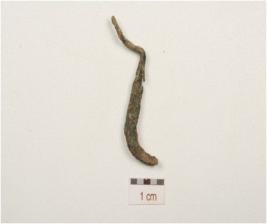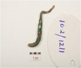| Description / विवरण | A fragment of unidentified object made of copper, pointed one side, rectangular cross section and rough surface. |