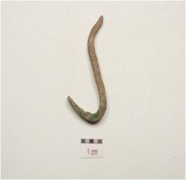 | Description / विवरण | A fragment of hook made of copper, rectangular in cross section from one side and square in section with rough surface. |