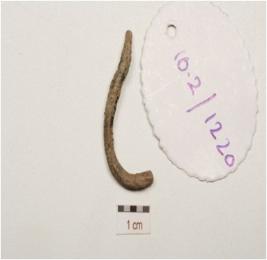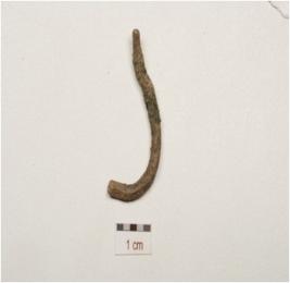 | Description / विवरण | A fragment of hook made of copper, pointed one end, rough surface and irregular circular cross section. |