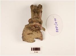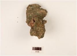 | Description / विवरण | A fragment of bronze bell with decorative surface, corroded and rough surface, chemically treated and polished. |