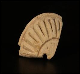 | Description / विवरण | Fragment of a Button, made of Faince, surface treated with white slip and well baked. Smooth surface on one side with incised design, shallow on the other side with a small projection, |