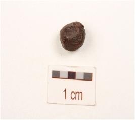 | Description / विवरण | A copper pellet, almost round in shape, uneven surface, cracks on surface. |
