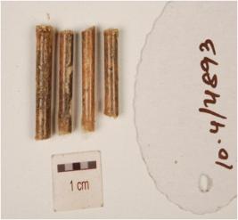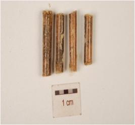 | Description / विवरण | Unidentified charred bone object broken into 4 pieces and polished surface, has circular section. |