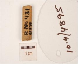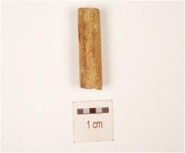 | Description / विवरण | Unidentified bone object with rough surface and channel in the interior side. |