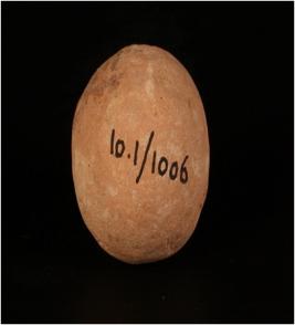 | Description / विवरण | Handmade terracotta round shaped sling ball, small in size, surface is treated with a wash in buff colour and well baked. |