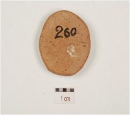 | Description / विवरण | A terracotta disc with smooth surface, rectangular in section, well baked, fine fabric and red in colour. |