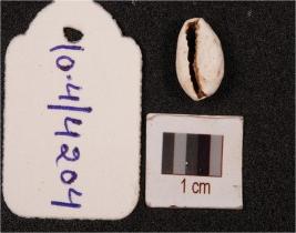 | Description / विवरण | A cowrie shell with powdery surface, natural groove at the base, white in colour and slightly dmage in the exterior surface. |