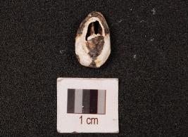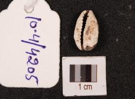 | Description / विवरण | A cowrie shell with natural groove at the base, white in colour, slightly damage in the exterior surface and powdery surface. |